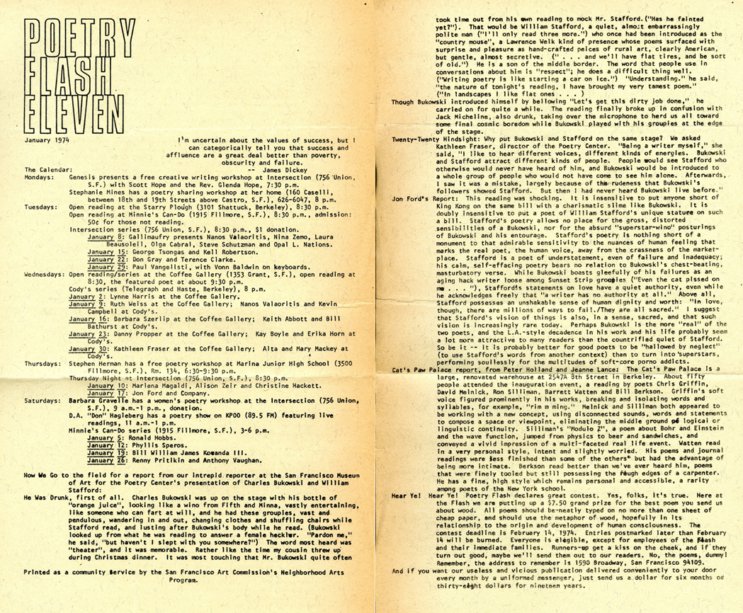 | A review of the event by the newsletter "Poetry Flash Eleven" |